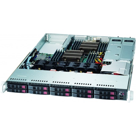 В сервере SuperServer 1027R-WC1R предусмотрены десять слотов для винчестеров 2.5″ SAS / SATA HDD с возможностью горячей замены (подсоединённых к бортовому контроллеру хранения данных).